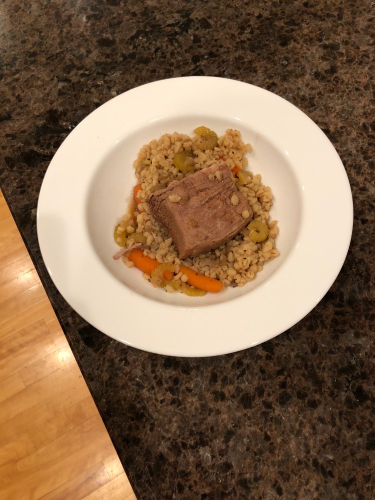 For THM- S meals- eliminate the carrots and the barley. Serve this roast over Trim Healthy Noodles from the Trim Healthy Mama Store, or Dreamfields pasta. You can reduce to 1 box of beef broth since you wont have any barley to absorb the liquid. A Chuck roast, Pot roast, or Chuck Roll roast are marbled making them great for the S setting and quite tender!