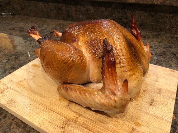 3 cups cooked turkey pieces (could be chopped, but I used the pieces I picked from the carcass)