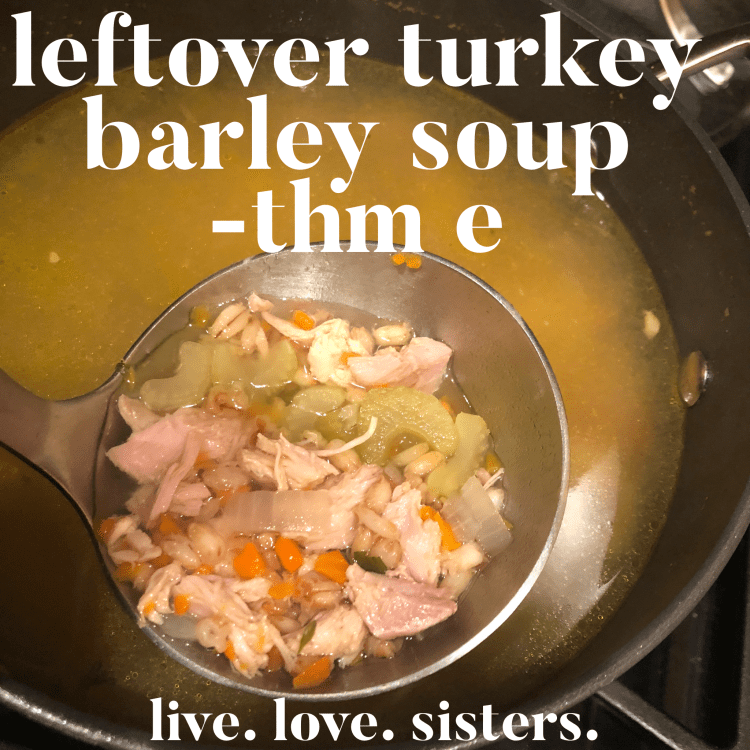 THM E meals are low fat, healthy carb meals. Because of this, white meat is best. Most of the bits I picked off our turkey carcass came from the breast, right off the rib cage, but I did have some dark meat in there. Overall, the soup is not fatty since the broth is 0 g fat as well.