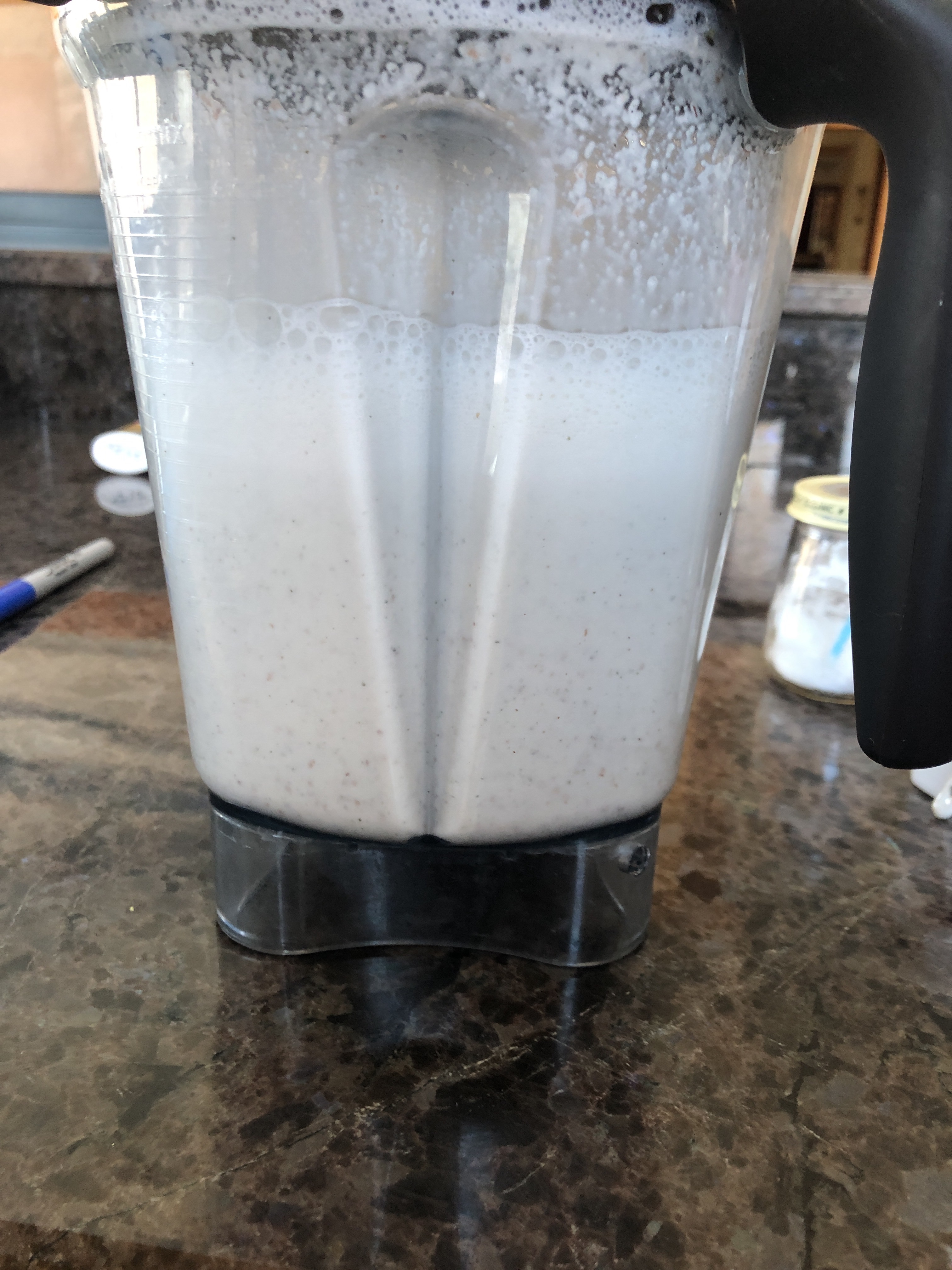 Then blend it up on your blender for at least 30 seconds, but until you stop hearing the almonds crushing up.