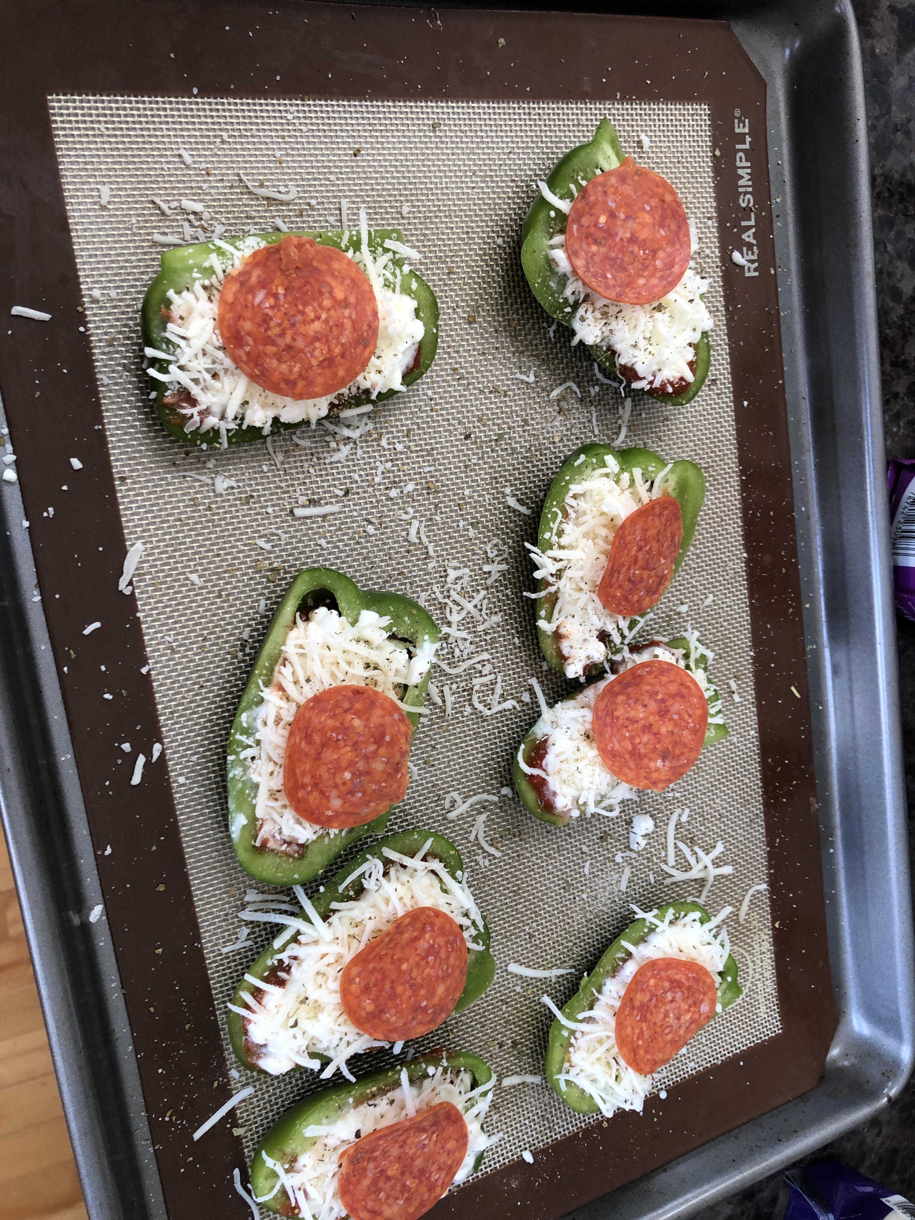 Even though I don’t count calories on trim healthy mama, I still love this recipe. I also love the freedom that I can make two peppers and eat them all, instead of restricting myself to just one pepper like I used to. I also have the freedom to add pepperoni slices or black olives or something else without worrying about adding in the additional calories.