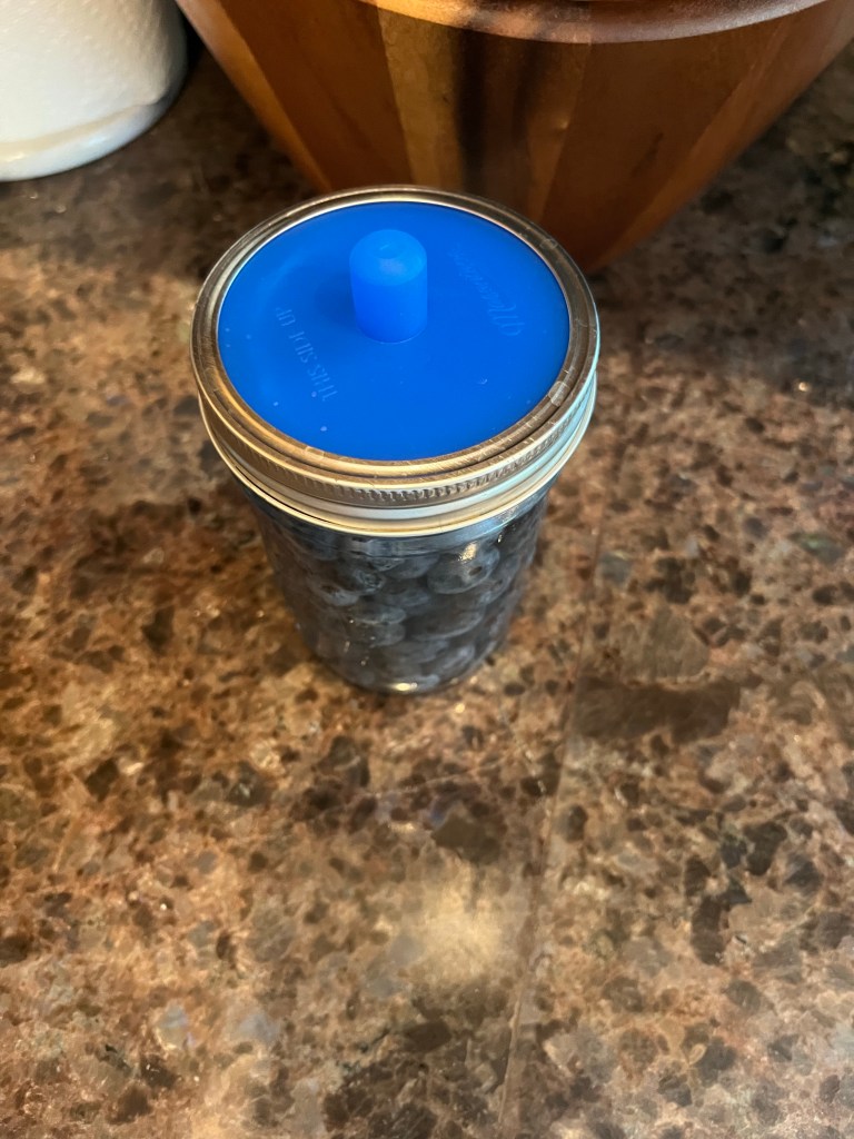 Fermented blueberries are an easy way to get fermented foods into my diet, and into my children’s diet. The fermentation process makes the blueberries taste a bit tart and a bit salty. Don’t be turned off by that! Try them, they are great on yogurt, granola, or just plain!