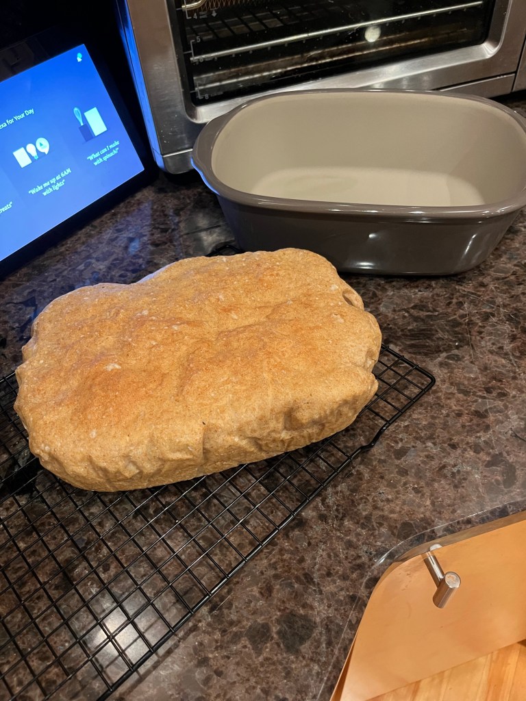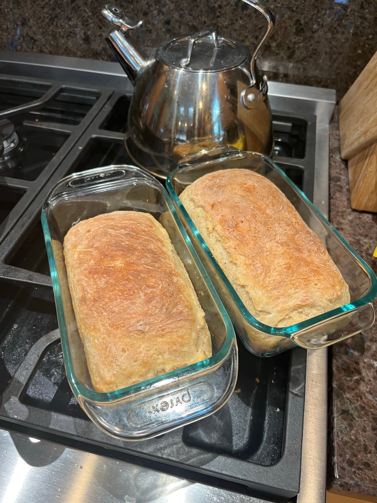 Once fully risen, bake at 350 for ten min. Then cover the top with tin foil to prevent it from getting too shark! And bake another 30 min.