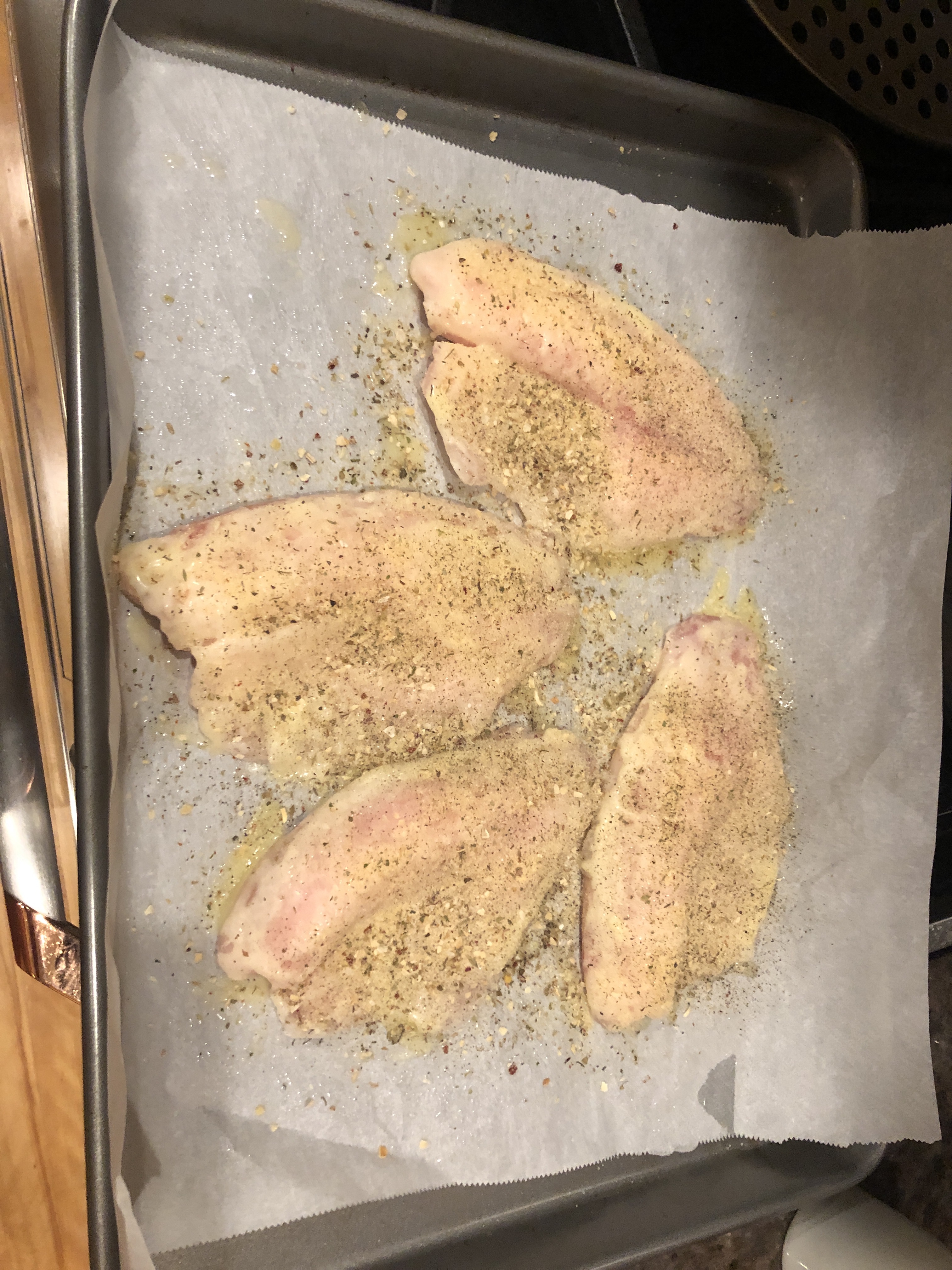 Don’t thaw the tilapia. Just set it on a parchment paper lined pan!